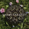 Padrão de Escultura Redondo de Madeira Cardaro Runa Constelação de Cinco Pontas Sol e Lua Pêndulo Torre Decorativa Prato de Pêndulo de Cristal
