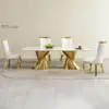 Mesa de Jantar de Mármore de Luxo Leve Mobiliário de Restaurante de Luxo Hotel 240cm Conjunto de Mesa e Cadeiras de Jantar de Designer em Aço Inoxidável