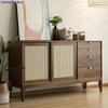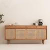 Aparador doméstico de vime estilo japonês Armário de armazenamento multifuncional Armário de armazenamento moderno simples Flat Door Solid Wood Tea Cabinet
